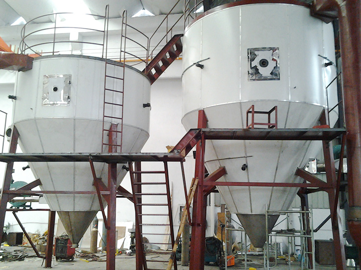 2、造粒噴霧系統:由造粒噴頭將液料霧化成微米級霧滴,進入干燥塔體。